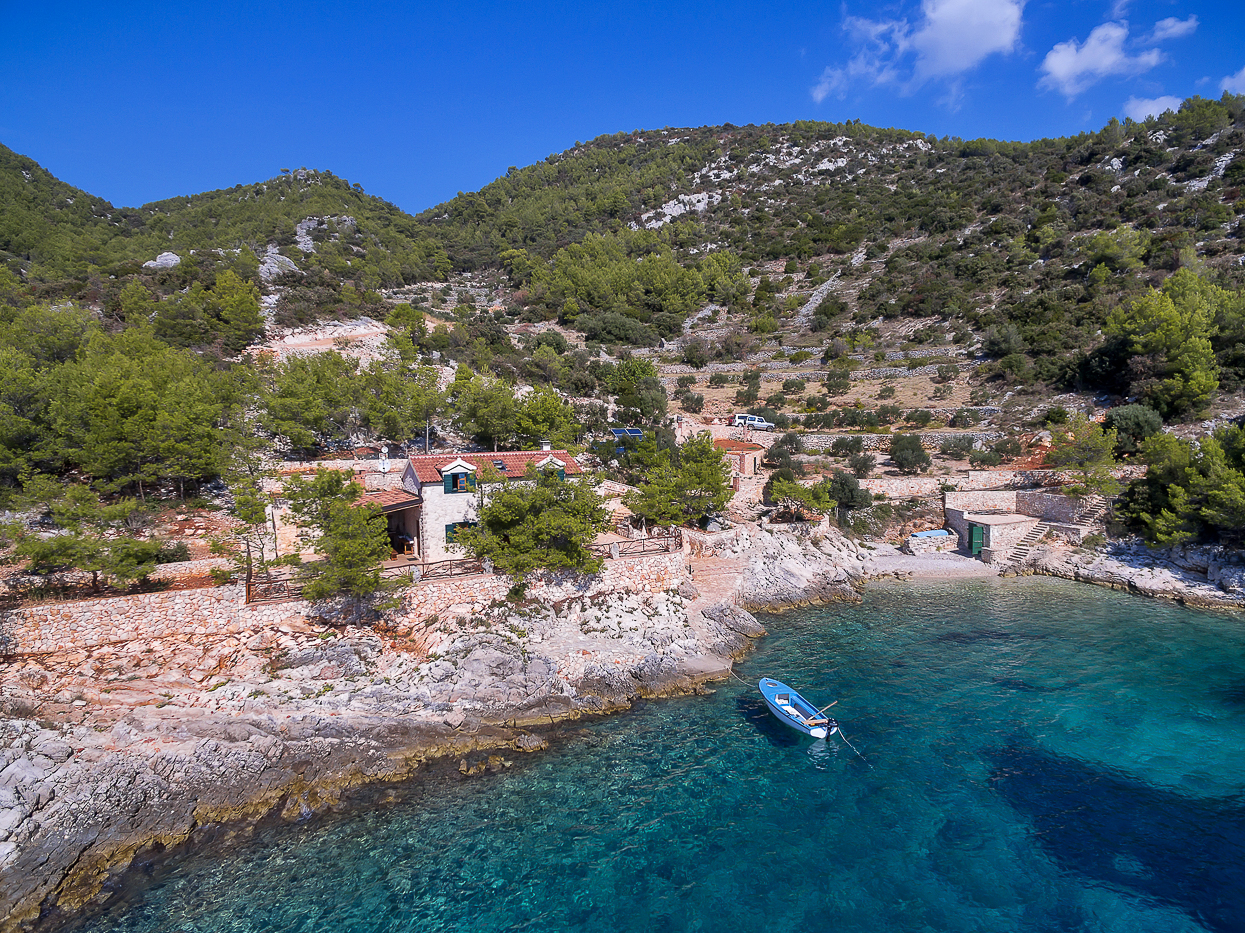 More about Villa. Villa Golubinka is located in the lagoon at the southern side of the island of Hvar, right on the sea coast. 92 square metres villa is entirely renovated. The exterior is original stone architecture, while the interior combines handmade wood, stone and Slavonian pantile, completely adapted to modern lifestyle.